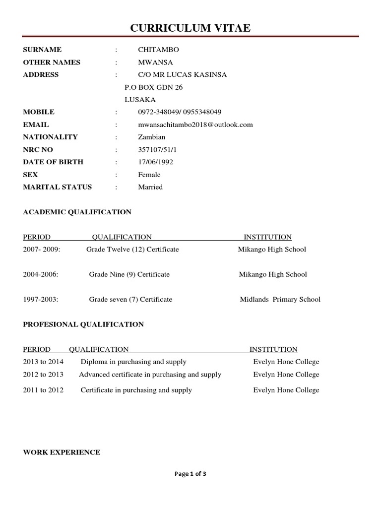 How To Write A Curriculum Vitae In Zambia / Http Www Zambianme Com Cv 1507897731do Nanamana Cv Pdf / How to write a curriculum vitae in zambia.. We did not find results for: How to write a curriculum vitae in zambia. Check spelling or type a new query. Maybe you would like to learn more about one of these?